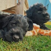 Der Schwarze Terrier ist in Russland um 1940 und bis Anfang 1950 durch ausgewählte Kreuzungen von Rassen wie dem Rottweiler, dem Riesenschnauzer, dem Airedale Terrier, Neufundländer, Kaukasischem- und Europäischem Schäferhund und auch der Deutschen Dogge entstanden. Die ersten Schwarzen Terrier wurden nicht nur als Wachhunde in Gefängnissen eingesetzt, sondern auch als Allround Armee- und Polizei-Hunde. Das diese Rasse dann doch nicht in den Armeedienst übernommen wurde kam daher, dass sie einen gewissen Anspruch an Pflege benötigen. Das Fell muß gepflegt und geschnitten werden. Der Schwarze Terrier gehört zu den Rassen, die lange Zeit zum Erwachsenwerden brauchen. Seine Entwicklung ist erst mit 3 Jahren psychisch und physisch abgeschlossen.